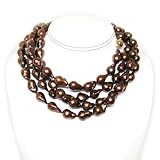 Unique, rare and oh-so-baroque. This luxurious pearl rope necklace is crafted from hand-selected large premium chocolate baroque pearls. Beautifully-toned chocolate brown baroque pearls of this quality are extremely hard to come by. The large freshwater pearls were selected for their unique and irregular shapes, as no two are exactly alike. The pearls have a gorgeous chocolate brown body color, luster, and surface. The pearls are very large for real cultured pearls; widths are 10-12mm and lengths range up to 17-18mm. The pearls are hand knotted on fine thread and finished with a premium 14k yellow gold 10mm double-safety ball clasp. This is THE pearl rope for the discerning woman who doesn't want to discover someone else wearing the same thing, ever! Due to the rarity of these pearls, quantities are limited. Jeweler accounts welcome, but additional discounts off this discounted sale price cannot be applied. NOTE: These exceptionally stunning pearls are also still available in 18-inch strands, just search for product number B003UIFY5A to view.